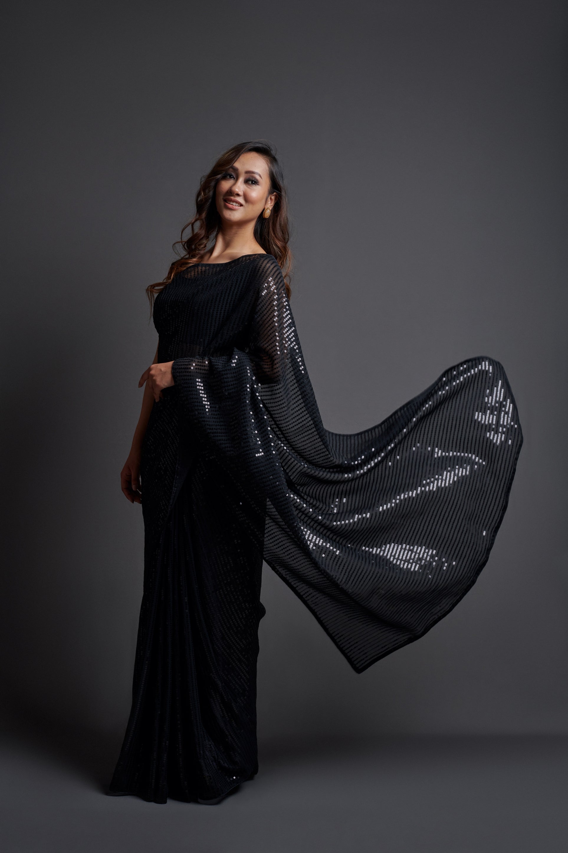 Black Georgette Saree with Designer Sequins Embroidery & Banglori Silk Blouse