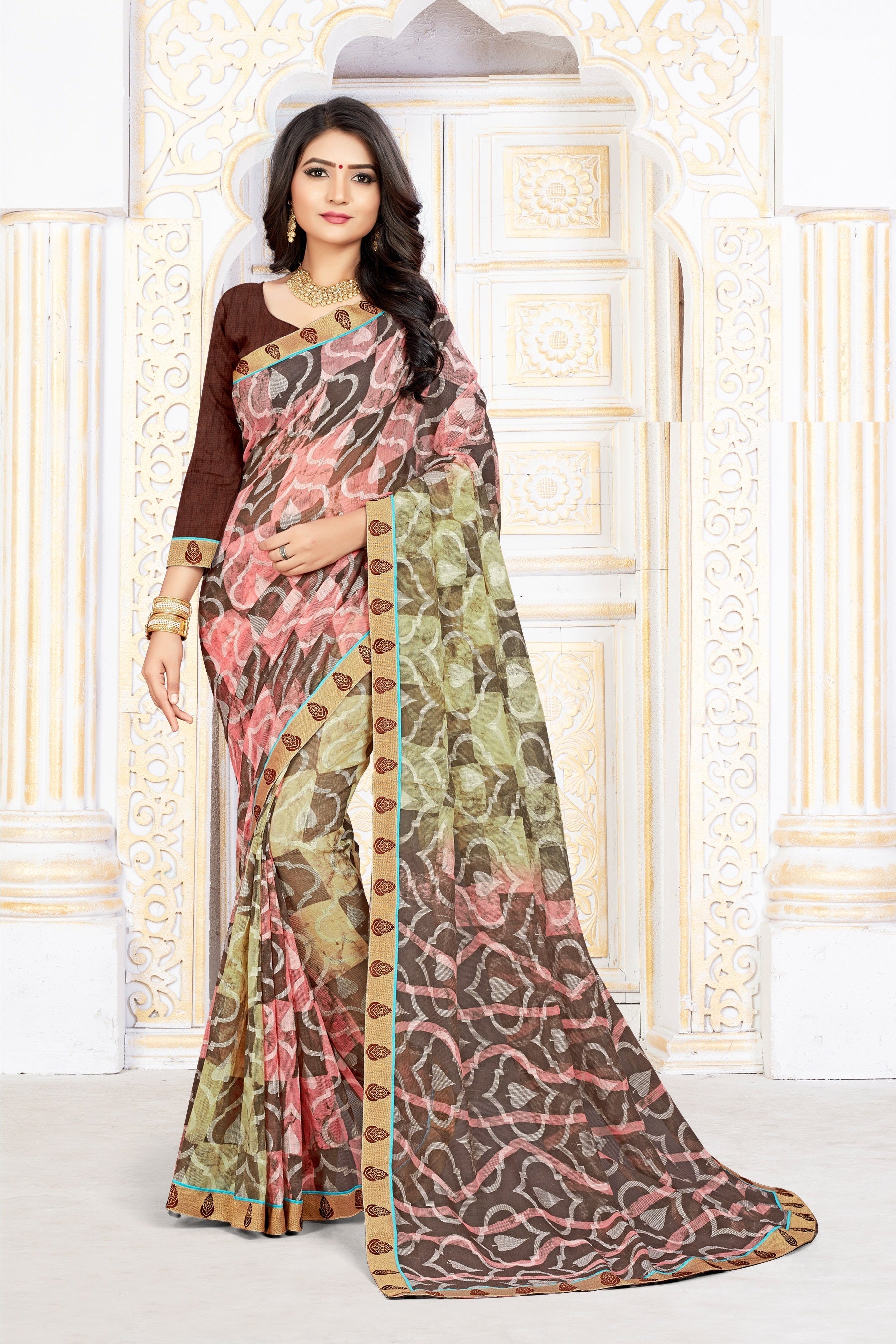 Brown Multi-Tone Brasso Art Silk Saree with Digital Print