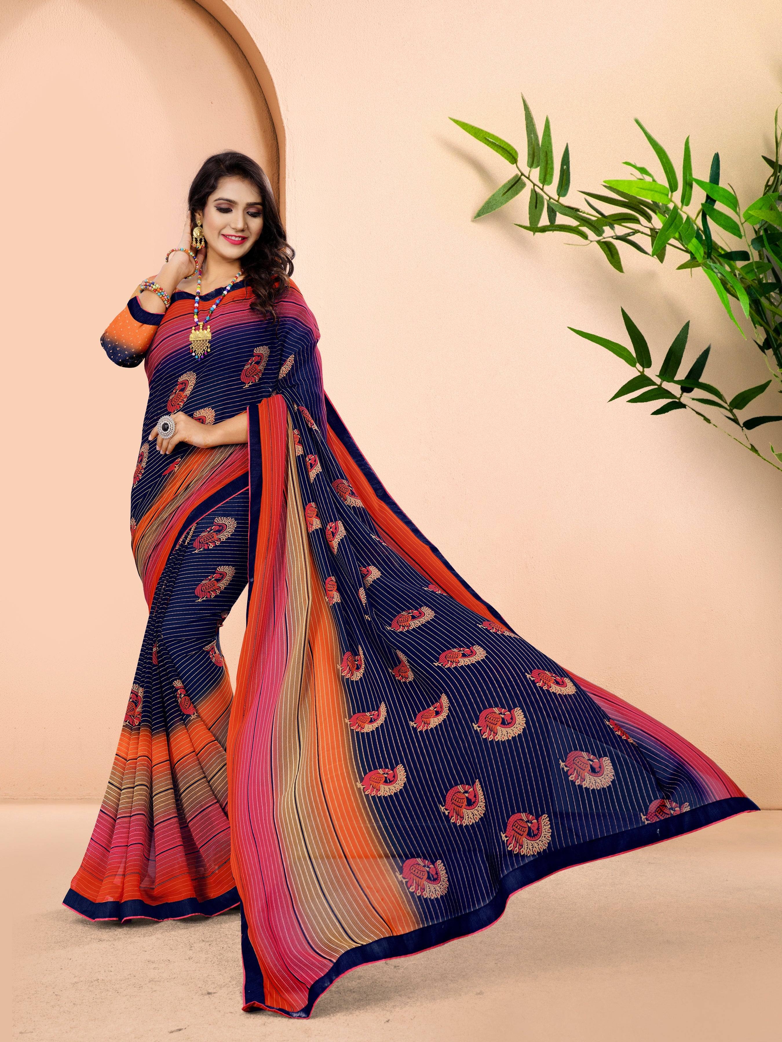 Elegant Blue Printed Saree with Matching Blue Blouse